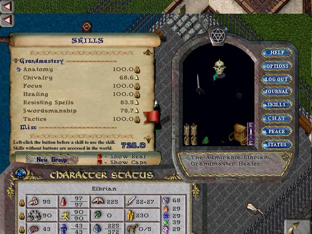 This character was a 6x GM with archery, tactics, fencing, anatomy, healing, parry, tried to do a template change, for a Paladin template but never finished. His resisting spells is pretty high though.